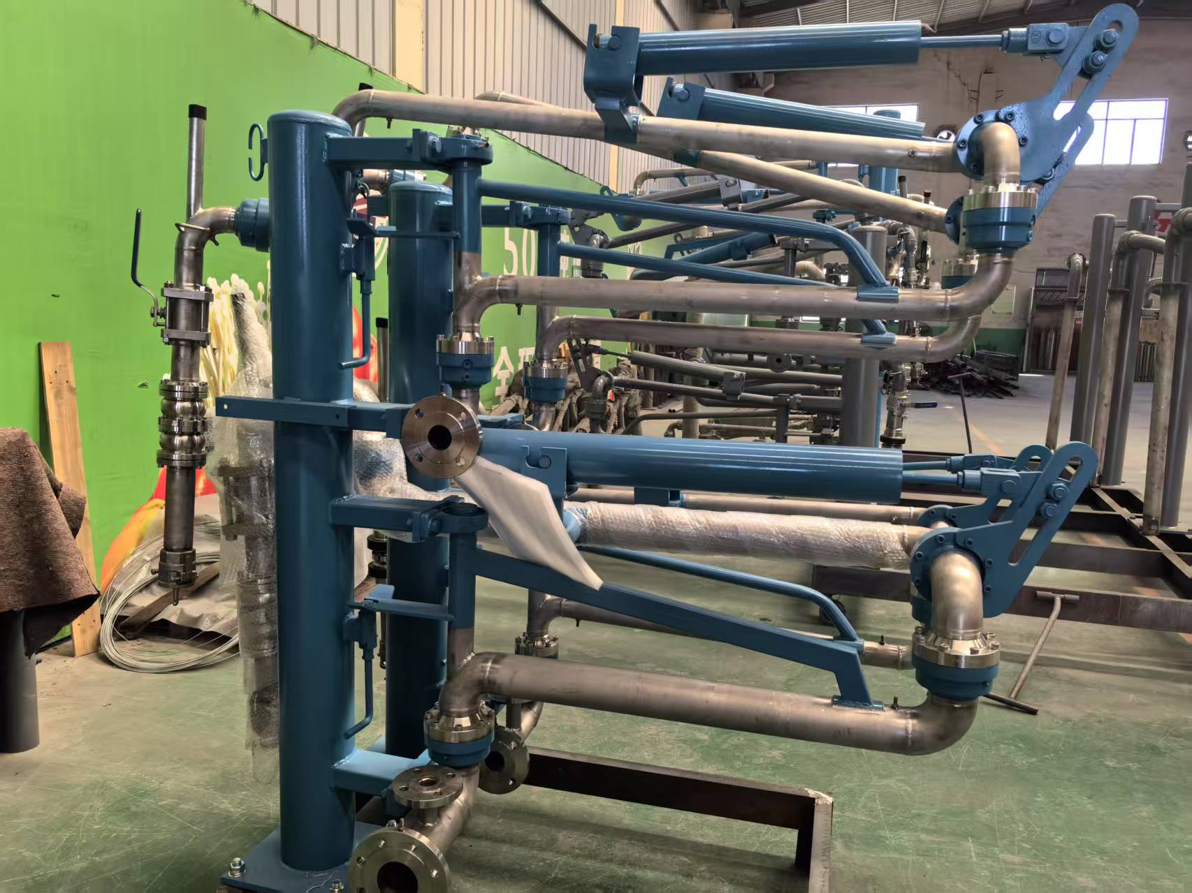 此鶴管的零部件全部采用鋁合金材質(zhì),具有重量輕、操作靈活、耐腐蝕等優(yōu)點,同時泵主體用鋁合金制造,具備良好的導靜電性能。軟硬管密封裝車鶴管同樣適用于易揮發(fā)或有毒氣體介質(zhì),氣相及液相管分開,液相管采用鋼管結(jié)構(gòu),由旋轉(zhuǎn)接頭實現(xiàn)回轉(zhuǎn),氣相管為金屬軟管或組合管。這種鶴管同樣可配置液位探頭、高液位報警及外臂驅(qū)動油缸或氣缸等附加部件。