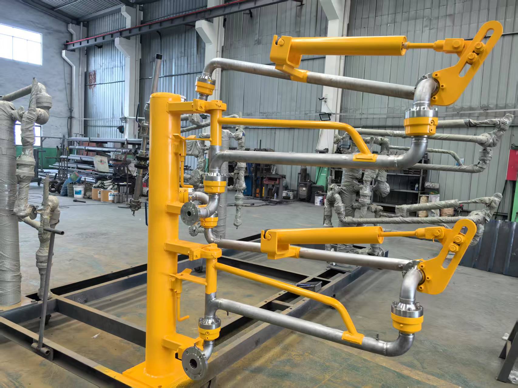 鶴管的關(guān)鍵部件包括不泄露的旋轉(zhuǎn)接頭和密封圈,這些組件選用合金鋼和不銹鋼材料,具備承受苛刻的軸向、徑向及力矩負荷的能力。旋轉(zhuǎn)接頭采用復式滾道設(shè)計,轉(zhuǎn)動靈活,而密封圈則采用耐磨、耐腐蝕的增強聚四氟乙烯材料PTFE,并內(nèi)嵌不銹鋼骨架,密封面經(jīng)拋光處理,確保了卓越的密封性能。